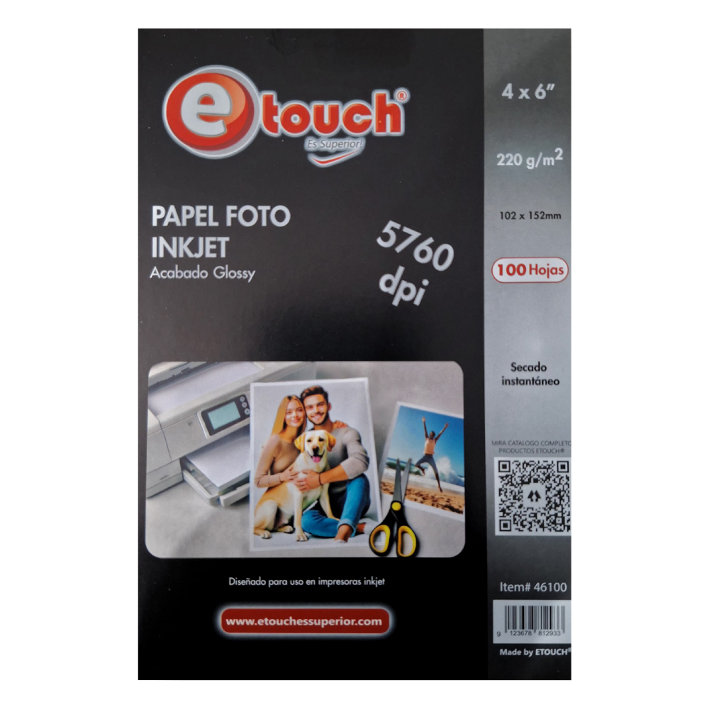Etouch Papel Fotografico Glossy 4×6 100 Hojas 220 grs – 46100
