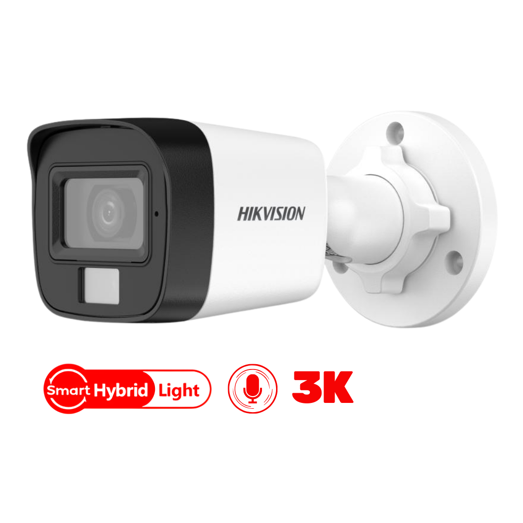 Hikvision Cámara Tipo Bala 3K 5MP / Lente fijo IR 20M / 2.8mm / IP67 / Smart Hybrid Light / Metálica Con Audio