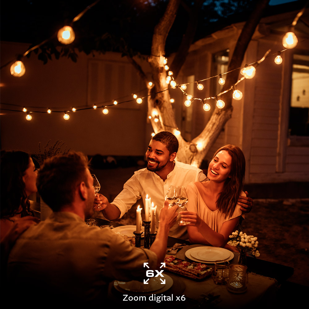 - Registra cada detalle, cerca o lejos, con zoom digital 6x.