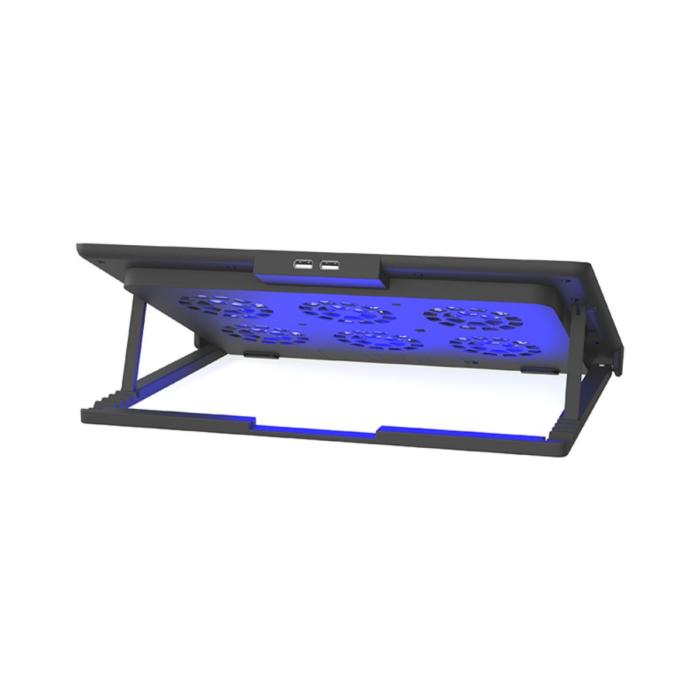 - Potencia de enfriamiento total – Equipada con 6 ventiladores silenciosos y luces LED azules, mantiene tu laptop a la temperatura óptima incluso en sesiones de juego intensas.