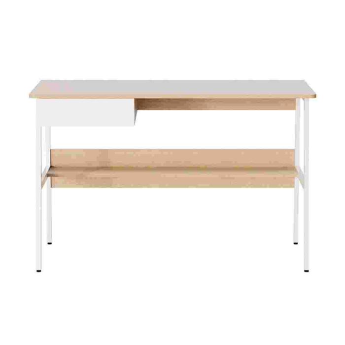 - Fabricado con tablero de partículas y una estructura de acero con recubrimiento en polvo, este escritorio garantiza estabilidad, soporte y una larga vida útil, soportando hasta 40 kg de peso.