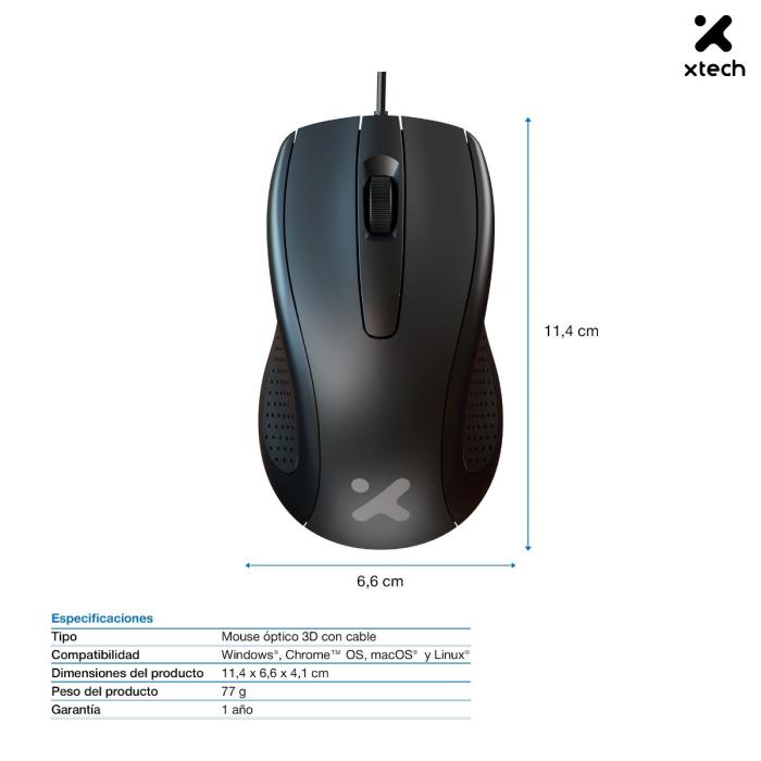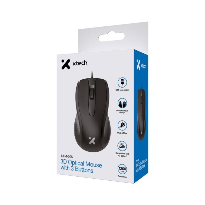 Xtech XTM-206 Mouse Óptico Alámbrico, 3 Botones, 1200 DPI – ID011XTK53